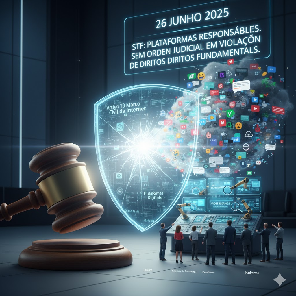 Em 26 de junho de 2025, o STF concluiu julgamento sobre o regime de responsabilidade das plataformas digitais de internet e decidiu que a exigência de ordem judicial como única condição para responsabilização dessas plataformas é parcial‑inconstitucional.